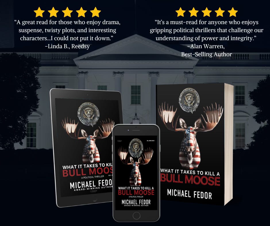 In this heart-pounding thriller with twists at every turn, follow Piper and his loyal team of patriots as they race against time to expose the truth before democracy itself falls prey to the monsters of greed and manipulation. What It Takes to Kill a Bull Moose is a pulse-pounding rollercoaster of loyalty, sacrifice, and unyielding courage that will keep you on your toes until the final page.